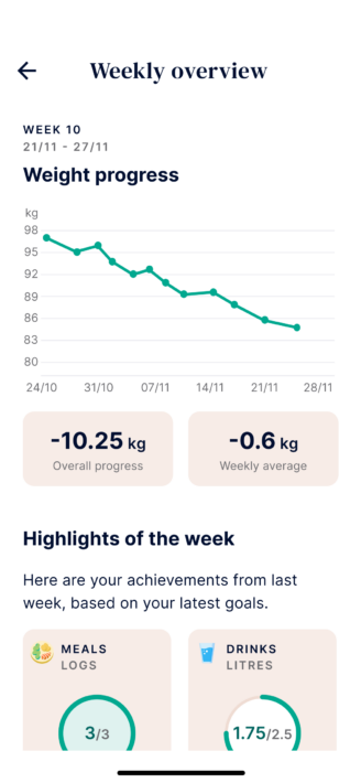 The Oviva app is your daily companion. Once you register, we’ll send your personal app login details via email, so you can download the Oviva app and get started with these features.