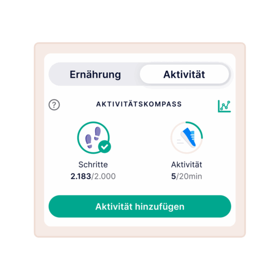 Du findest den Aktivitätskompass ganz oben in deinem Home-Bereich. Er zeigt dir auf einen Blick, wie aktiv du heute warst – also wie viele Schritte du gemacht und wie viele Minuten du dich bewegt hast.