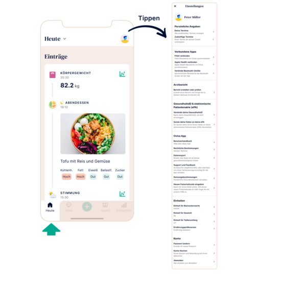 - Gib in der Oviva Direkt App immer korrekte Daten ein, wenn du dazu aufgefordert wirst.