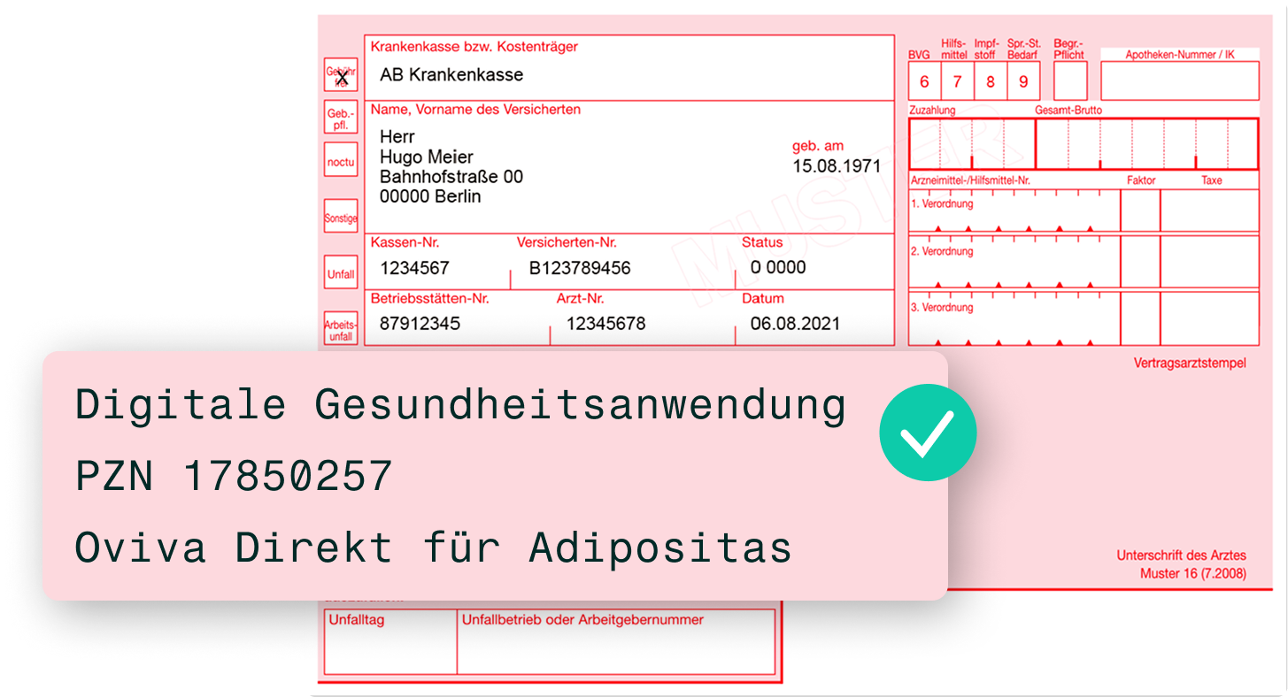 Sie können Oviva über das Praxissystem oder manuell verordnen. Rechnen Sie die Verlaufskontrolle über GOP 01471 (8,15 €) ab.